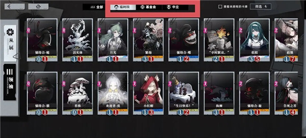 在编排卡组时,可选择两个阵营,福利院与基金会。