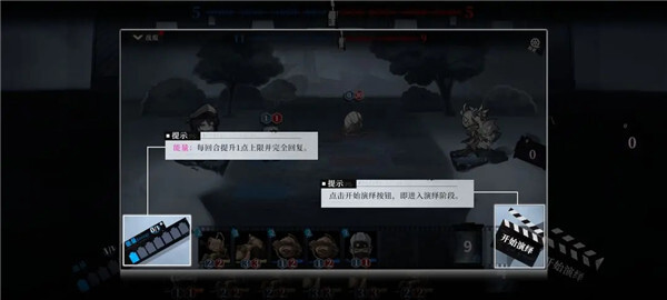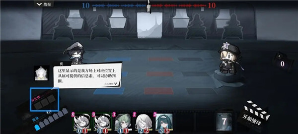 左下角为能量显示。能量从属上场需要消耗能量,消耗能量数为从属卡牌左上角的蓝色能量数字。