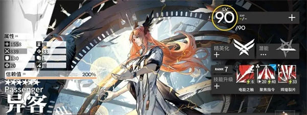 解析:在后期可以用来替代芬,11的费用靠天赋弥补了1,一个10费的先锋附加3级的费用回复技能确实也是非常不错的选择。