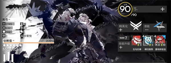 山,全时期可用干员,具备独守一路的能力。山在开局精一状态下即可上场,其核心技能为二技能“横扫架势”,该技能不仅拥有多目标输出能力,还能回复自身生命。在前中期的战斗中,山的表现极为出色,一旦登场,几乎可以替代盾、奶与先锋的组合,仅凭一己之力守住蓝门。然而,到了后期,面对斧头骑士、高普尼克这类高危敌人时,山无法像泥岩那般轻松抵挡,推荐度也因此有所降低。前中期推荐指数:★★★★★,后期推荐指数:★★★,收藏品重要性:★★