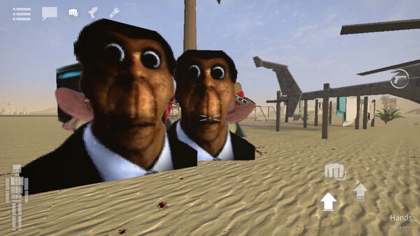 3、通过滑动屏幕控制视角方向,左边有隐形轮盘可以前进,右下角可以跳跃,点击拳头可以挥动拳头攻击