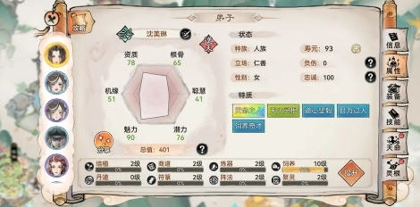 首先作为一个萌新,肯定会招募到各种各样的弟子,剑修呀,兵呀,医生等等,不过要如何选择一个好的剑修呢。