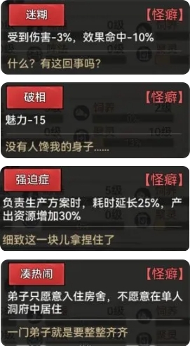 【怪癖】种类也很多。大多数会拖后腿,部分无伤大雅,小部分反而会起到好作用。