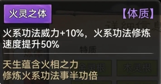 然后我们就要考虑到他的体质了,这游戏非常的多样化,有非常多的体质,各种五行体啊之类的,不过我们剑修就需要天火+火灵之体,如果你也招募到了,那我真的会哭死,这就是欧皇本皇啊