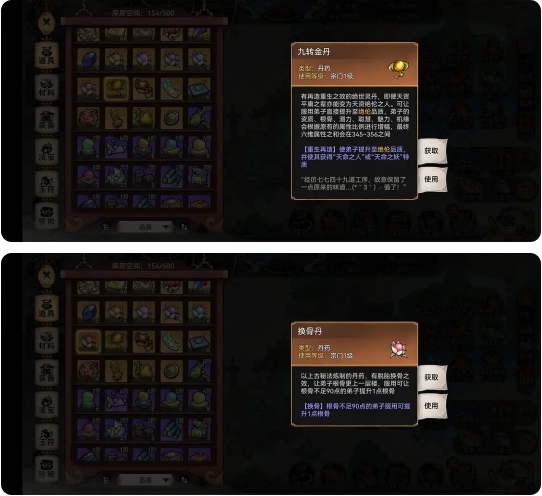 有些新手或许会问,要是我弟子根骨欠佳,或者没有天命,该如何是好?这时候,丹药就能派上用场啦。九转金丹可直接让你的弟子拥有天命,还能摇身一变成为金色弟子呢。换骨丹以及各类酒、丹药,在后山获取后,都能提升弟子根骨,所以无需担忧。至于丹药来源,会开启炼丹大会活动哦。欧皇们肯定不愁丹药不够用,运气差点的,咱们也有保底兑换机制。因此,别小瞧蓝色、紫色弟子,要是他们有天火、五行、火灵体这些优质天赋或特性,就留着,后续靠吃药提升就好啦。