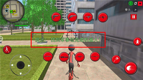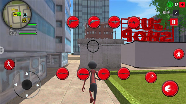3、游戏采用经典的轮盘控制,左边为方向,右边为各种行动,画面上的各种武器都是可以使用的。