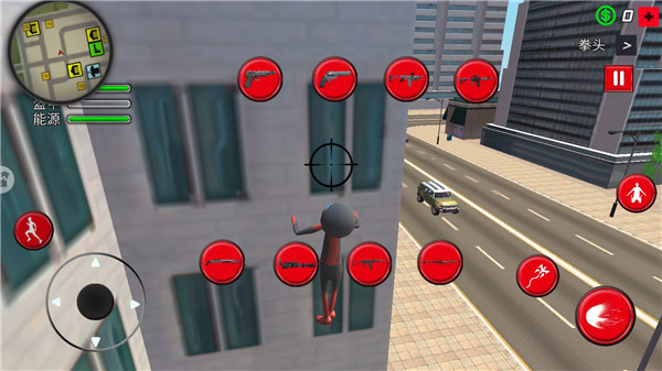 2、地图上有高楼林立的城市。蜘蛛侠绳索穿梭自如,非常厉害。