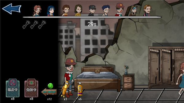 2、此次模式与以往有所差异,道具为随机设置。进入游戏后,上方的镰刀意味着屠夫拥有10次抓捕机会,即玩家需成功躲避10次才能顺利过关。