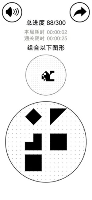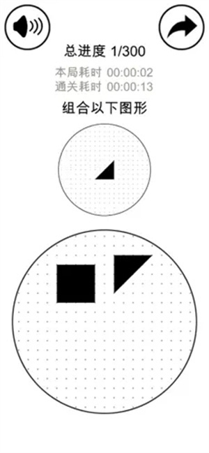 3、当前共有300个关卡,基础图形数量从2依次增加到5,难度也依次递增