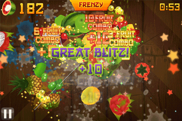 1、水果忍者:在经典模式里得到50分