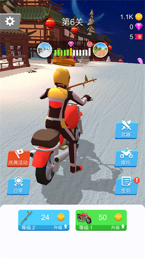 7、几十种不同的摩托车可以选择,在飙车的时候可以使用暴力的手段,快点去购买各种武器吧