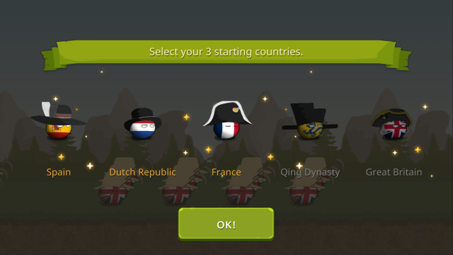 打开波兰球之战官方正版游戏后,如图所示,全部点亮图标之后点击【OK!】