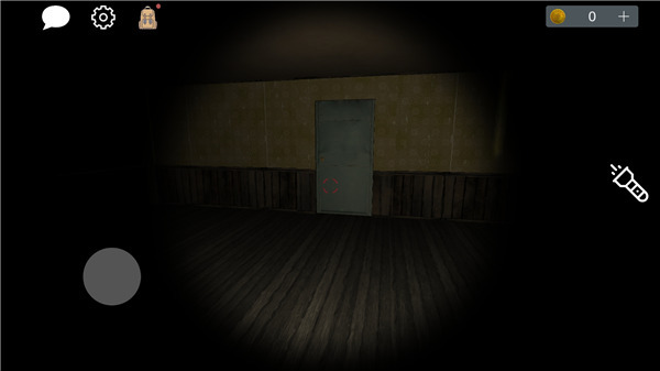 4、初始状态,玩家拥有手电筒(可关闭),左上角分别是来聊天、设置、以及背包,用于游戏中收集线索道具。