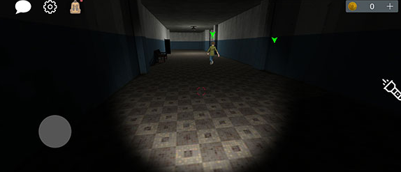 4、初始状态,玩家拥有手电筒(可关闭),左上角分别是来聊天、设置、以及背包,用于游戏中收集线索道具。