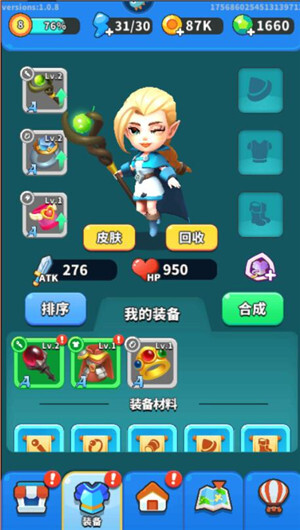 4、进入到游戏的“装备”界面,将获得的装备为角色穿戴上