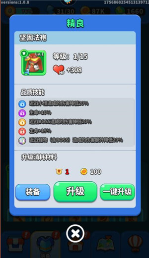 5、点击已经穿戴的装备,还可以通过升级来提升等级和属性