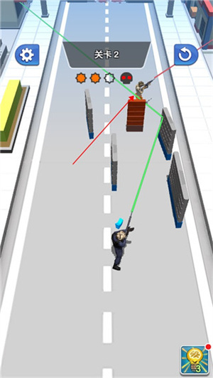 3、有的时候可以通过一些障碍物,帮助子弹可以轻松的反弹到土匪身上。