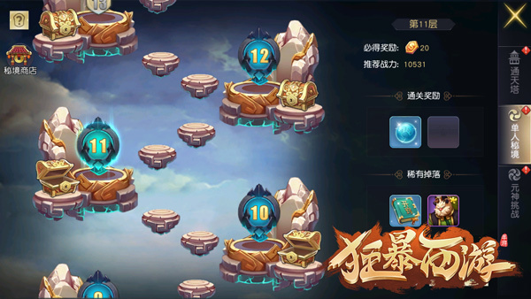 单人秘境是一个获得伙伴材料、境界材料,快速成长的极限挑战副本。