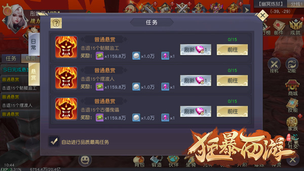 1、悬赏任务每日系统会随机生成,玩家可以选择手动完成或自动完成;