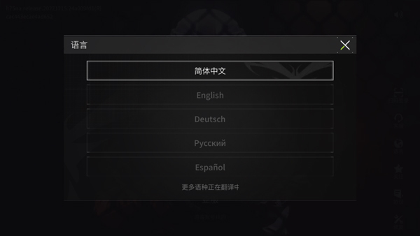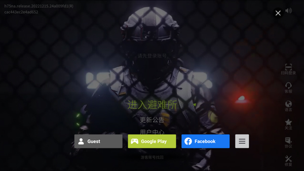 1、首先打开萤火突击国际服手游,点击右侧语言按钮。