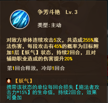 因为红孩儿的[火焰喷射器]是对一列英雄造成伤害,所以对方哪列人多,就把红孩儿往哪里放,烧就完事儿了!红孩儿的[火焰喷射器]有极高几率给敌方挂上妖气的状态