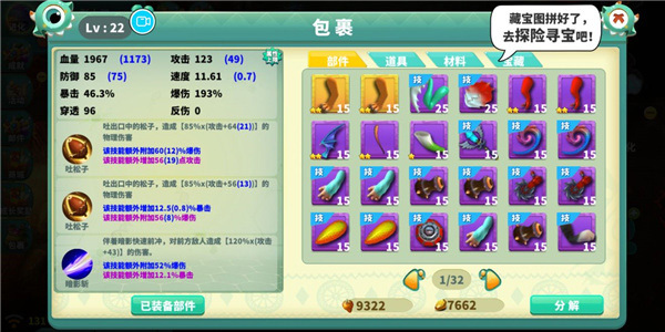 相对于最终boos在属性上必须达到一定条件才能攻略击杀,要不然就像大口以前一样全程在给怪挠痒痒,肢体可以在探索地图里慢慢积攒,不用太过于最求三属的极限,只要普通紫色肢体属性好都能用,所以大口整理了一下属性最低的攻略给小伙伴们。