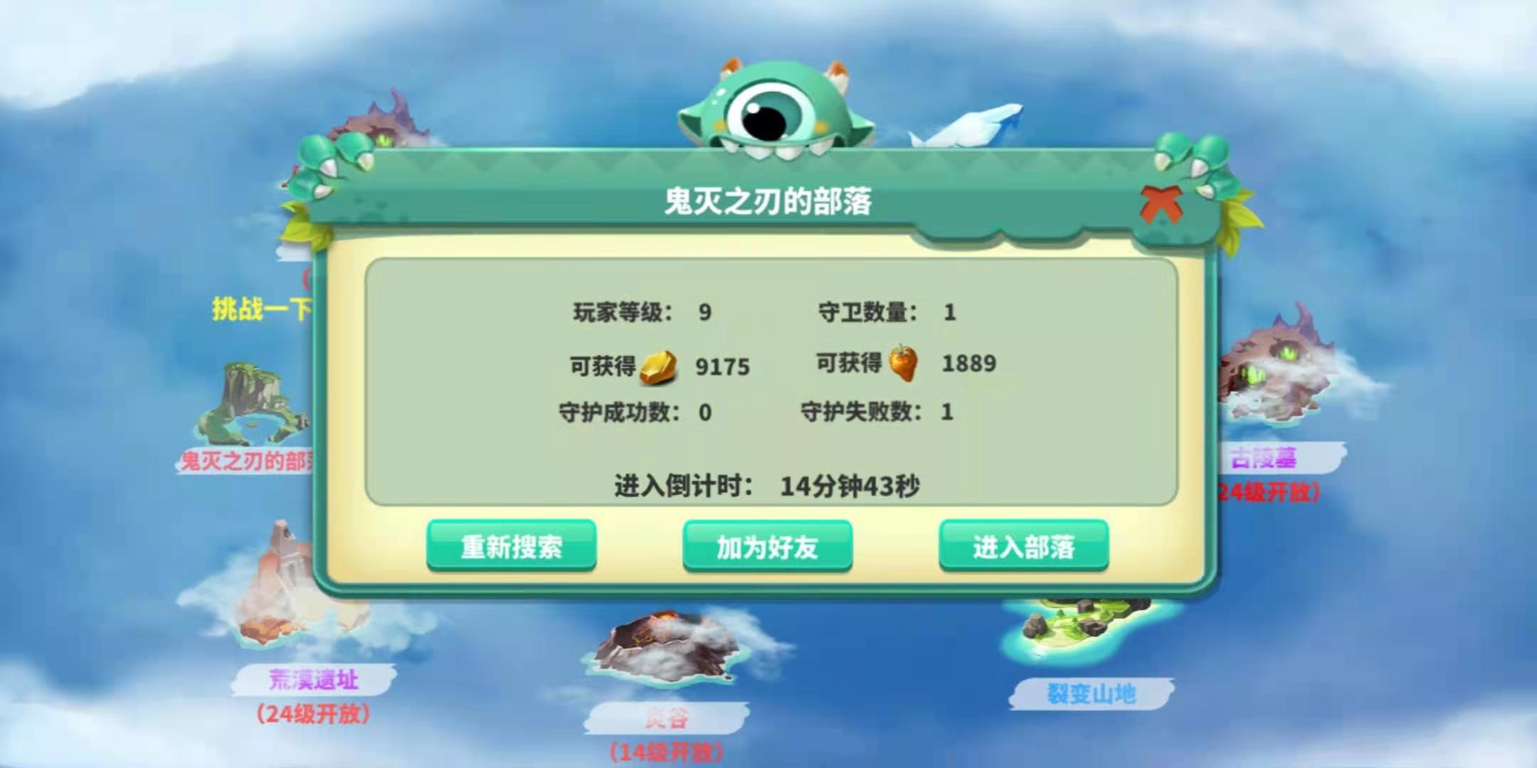 从码头处可以看见一个“其他部落”的地图,点击搜索探险,页面会弹出一个其他部落的信息,在页面中,玩家除了可以探险他人部落,还可以直接在下方点击加好友,如果玩家觉得该部落不适合,可以进行再次探索,再加好友。