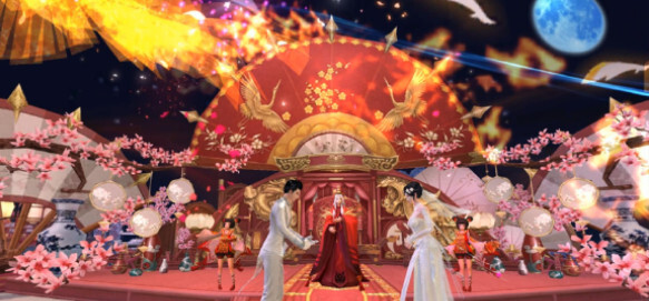 盛大的跨服婚礼,还有堵门、抢绣球和拼酒等有趣玩法,华丽非凡,羡煞三界!