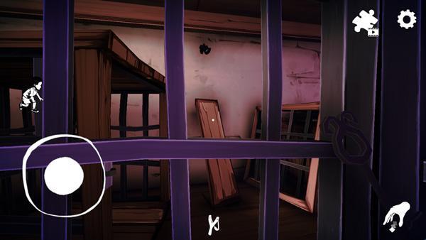 6、然后控制轮盘移动走出铁笼,并通过寻找线索来逃离这个恐怖的房间吧!