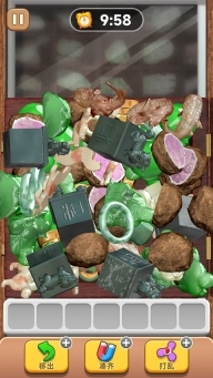 4、尽可能去摸索下方的物品,优先收集小物件,通过形状来判断。要是对形状熟悉,判断起来就轻松些。总之,多玩几次就很容易通关。我连着玩了两三天,刚开始那几天怎么都过不了,后来熟悉了物品形状,通关就容易多了。