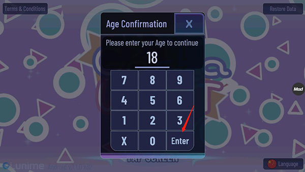 3、完成设置后,点击【tap screen】;(需注意:此页面当前虽为英文,但进入游戏后,页面将变为中文。)