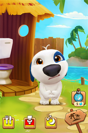 有时汉克狗需要上厕所时,马桶图标会显示红色,这时,需要点击马桶,让汉克狗上厕所,上完厕所一身轻松,马桶图标会显示为黄色。