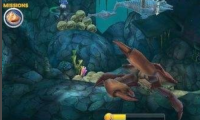 3、对弱点冲刺攻击。攻击成功,螃蟹会暂时逃开,我们的鲨鱼趁机到周围捕食进餐马上回来。(注意不要出洞)循环数次,即可击败巨型螃蟹。