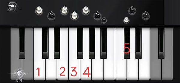 钢琴处观察—弹奏,只弹奏白色棋子对应的琴键,同结局一图所示