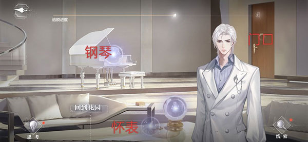 第三个房间——门口处观察—怀表处观察,思考得出夏萧因的身份(此处一定要思考)