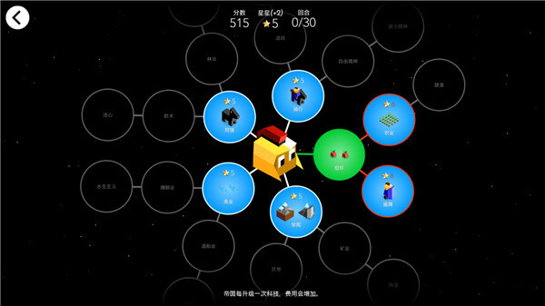 2、关于技术:游戏精髓,科技树!需要消耗星星解锁科技,每个科技可能带来新的兵种、新的地块、新的星星获得方式和新的任务等等;