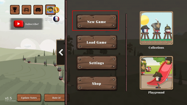3、进入游戏系统主界面,在此界面,你能看到自己拥有的国家硬币以及显示全国的金额。你可以利用国家硬币来解锁国家球,也能够通过向左滑动面板,进入“playground”和“collections”界面。最后,点击“New Game”即可开启游戏。