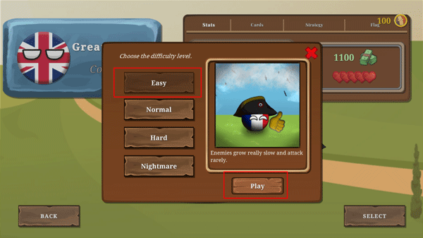 10、在“info”板块,你能够查看一般信息以及本国的各项统计数据等内容。在“Countries”板块,你可以浏览其他国家的统计情况并处理外交事务。“Obiectives”板块展示着目标,当你成功完成所有这些任务,就能赢得游戏。“Army”板块中,你能看到自己的军队,还可从军营招募士兵。“Diplomacy”板块里,有各种外交选项,你可以宣战、发送结盟请求或者解除盟友关系。需注意,每一项操作都算一个动作。当你持续攻打某个国家,他们可能会因疲惫不堪而请求成为傀儡国家。要是你接受这一请求,该国所有的驻军都将供你调遣。最后,在部分领土和不同的战役地图中,隐藏着神秘的乡村球,尝试寻找它们来揭开秘密!