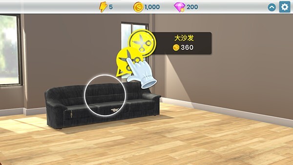 2、改造沙发需要360个金币,将剪刀图标移动到沙发上,