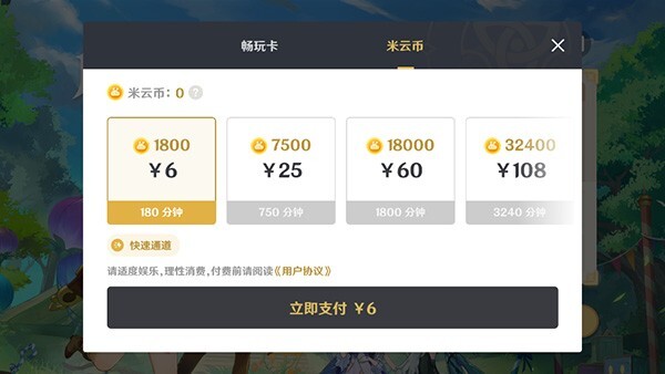 计费规则设定为每分钟消耗10米云币。要是账户里存在剩余的免费时长,或者有处于生效状态的畅玩卡,那么扣费顺序依次为【畅玩卡】-【免费时长】-【米云币】 。