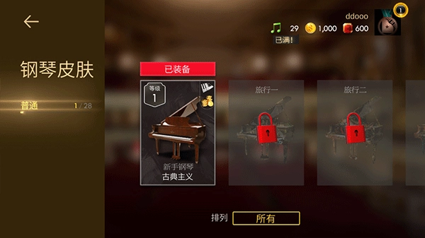 8、玩家成功通过关卡获得奖励可以解锁不同的钢琴皮肤。