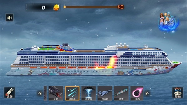 4、屏幕上方轮船血条消失后,轮船将会沉没。