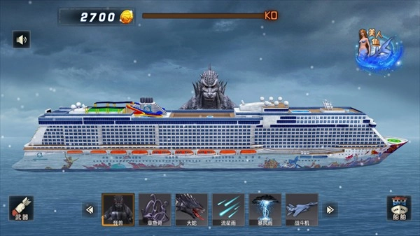 3、选择使用不同的道具来对轮船进行攻击;