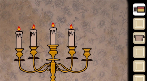 3、过去:可以移动后搜刮屋子拿到“冷汤”和“蜡烛”,将蜡烛放在烛台上用火柴点燃