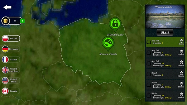 在终极钓鱼模拟器2中,每个地图都是不同的!您将有机会在夏季和冬季地图中钓鱼!冰封的湖泊、浅浅的鳟鱼河或波涛汹涌的秋海。一切都在等你!