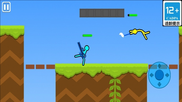2、拾取随机武器挥砍或投掷,消耗对手体力至归零。