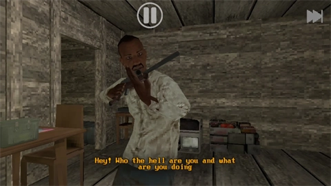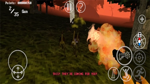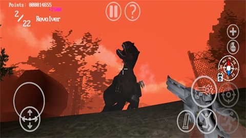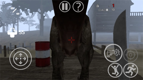 4、来个随机开始,你需要尽快的离开,不然就会有恐龙袭击。右上角的三角可以切换武器。