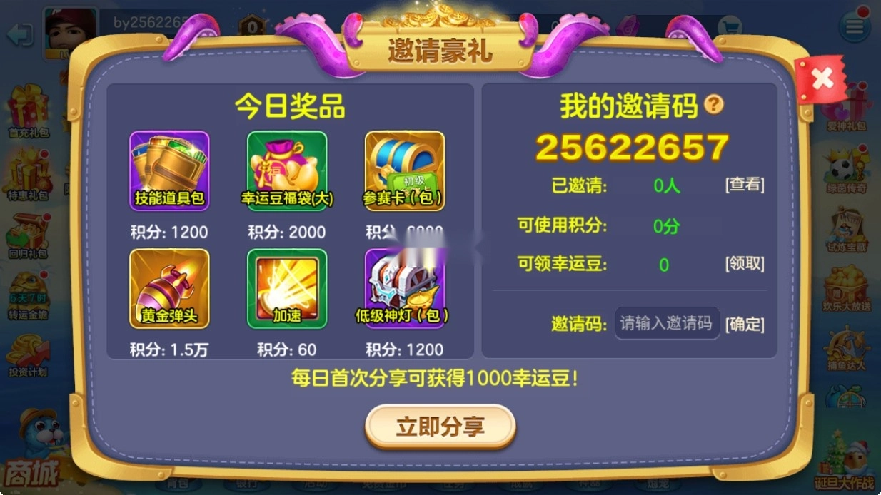 2.每日分享,玩家可通过捕鱼游戏内直接分享微信或者qq等,可以获得大量金币;