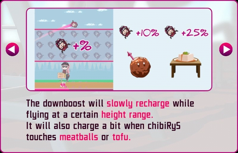 4、在一定高度范围内飞行时,下降助推器会缓慢充电。当chibiRyS接触肉丸或豆腐时,它也会充电。