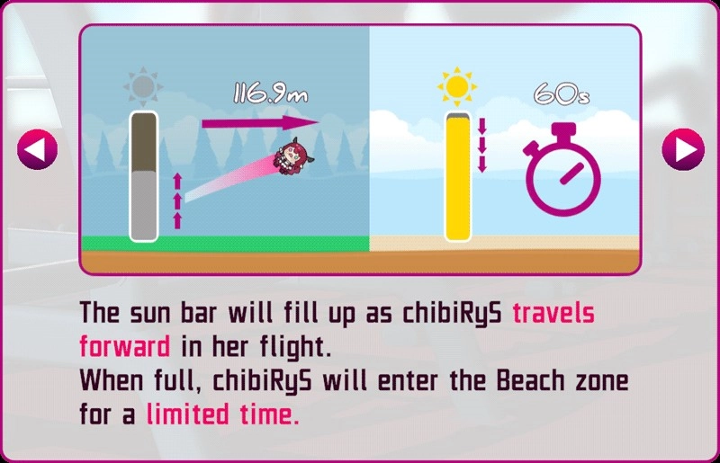 5、当 chibiRyS 在飞行中向前飞行时,阳光栏将会填满。满后,chibiRyS 将在有限时间内进入海滩区域。